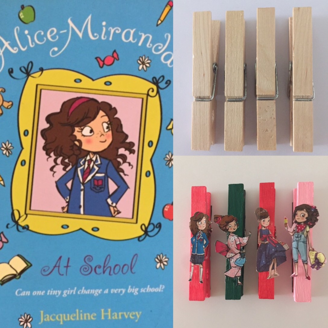 4. Glue the cut out pictures of Alice Miranda onto our peg.